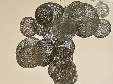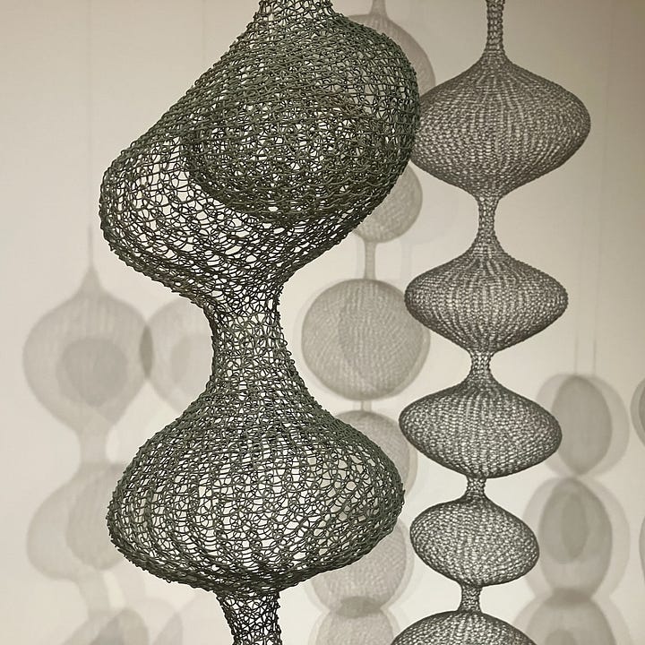 And here I will insert a final note about Ruth Asawa: What astonishes me most about her complex, shapes-within-shapes sculptures is that they are “continuous”— a single wire is bent and woven to create both the inner and outer layers of these forms. If that’s not amazing, I don’t know what is. But what strikes me here is the similarity between her sculptures and my journey (all our journeys, really): Though our travels are multi-dimensional, encompassing worlds within worlds, they are all “continuous,” defined by the single, wire-like line our bodies draw as they move across countries and continents.